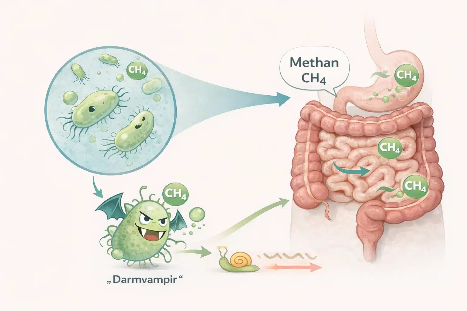 Je stärker diese Mikroorganismen vertreten sind, desto höher kann die Methanproduktion ausfallen. Und genau hier beginnt das Problem: Mehr Methan führt zu einer langsameren Darmbewegung.
